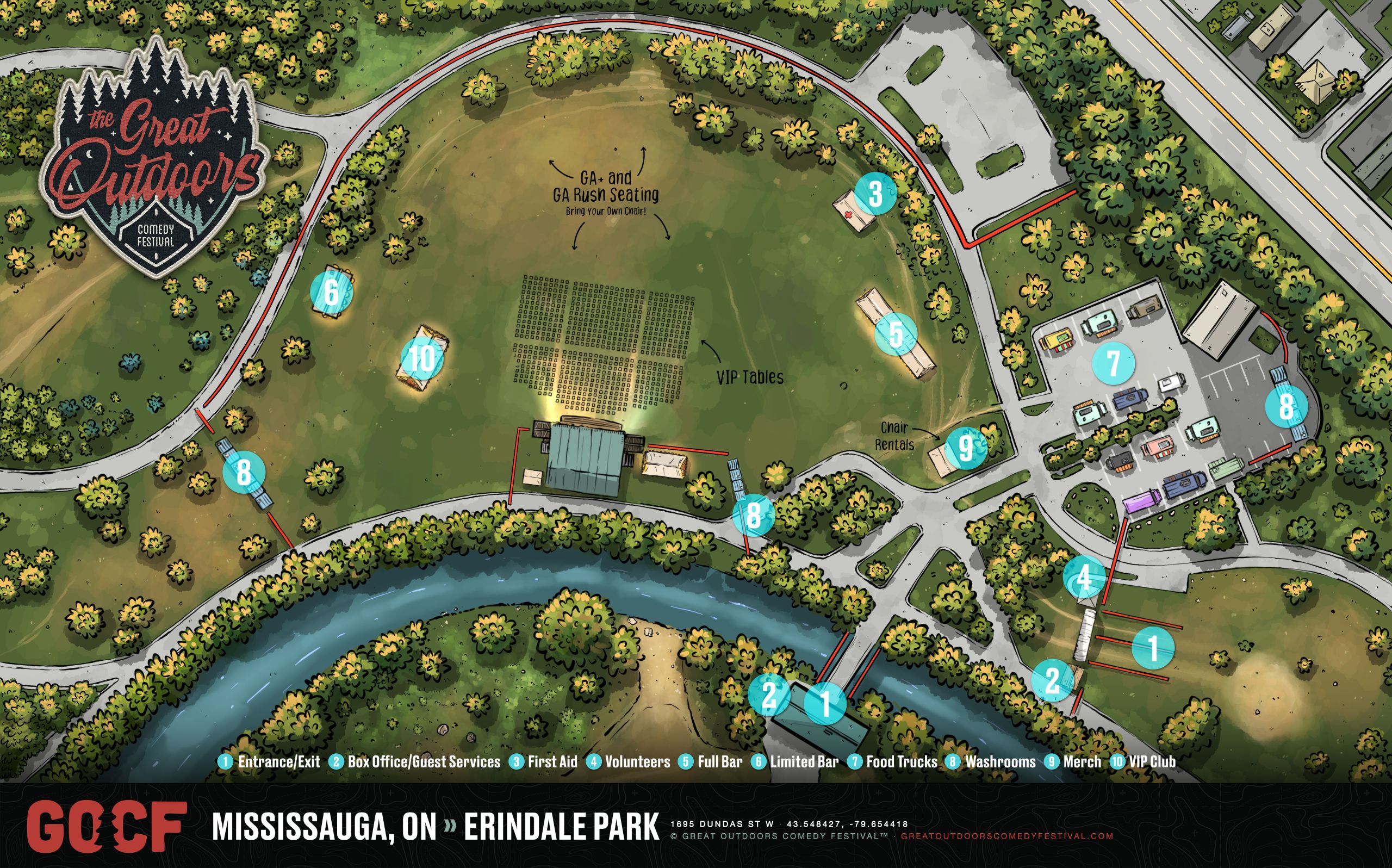 GTA Outdoor Comedy Festival | Mississauga, Ontario | Erindale Park | Festival Site Map